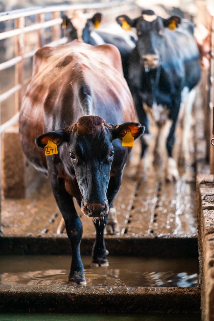 We knew from our experiment that crossbreeding was something that could be a good step for our herd. But we were not convinced which direction we should go. There were some farms in California that had been doing crossbreeding for a while and we visited them to learn more. The farm was milking what they call a “ProCross” cow. It’s a combination of Holstein, Viking Red, and Montbeliard. In this rotation, the Holstein brings genetics for making lots of milk, and the Viking Red and Montbeliard add in better fat and protein as well as better health traits and bigger calves that have more value.