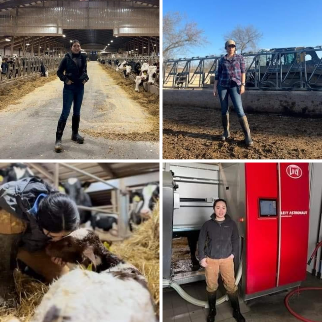 The farms here in the U.S. are different from most of the farms where I grew up. I like to learn about the technology and all of the different practices used for cows and growing crops. I really love being around cows, they make me happy.